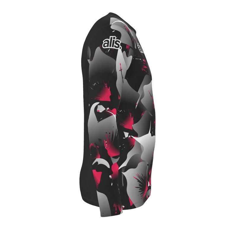 The design takes inspiration from the Bauhinia flower, the national symbol of Hong Kong, reinterpreting it through an expressive, modern lens. The oversized petals fade between black, grey, and deep crimson, reflecting both the strength and contrast that define the city, its intensity, rhythm, and identity.The pattern flows seamlessly across the shirt, blending the elegance of the Bauhinia with a bold, almost abstract edge, creating a visual balance between chaos and beauty. This isn’t just a pattern, it’s a statement of pride and individuality.
